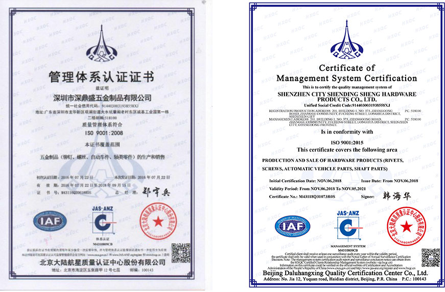 深鼎盛五金制品廠嚴(yán)格按照ISO9001體系來執(zhí)行各項工作,從每個產(chǎn)品的設(shè)計到生產(chǎn)到質(zhì)量檢測,鼎盛都嚴(yán)格按照該體系指示來執(zhí)行,我們有獨立的QA部門,該部門有獨立的生產(chǎn),設(shè)計部門,設(shè)置了標(biāo)準(zhǔn)的QA/QC程序,從原材料的采購,到生產(chǎn),到組裝,包裝,以及出貨我們都進行嚴(yán)格檢測和控制以確保客戶能得到最好的產(chǎn)品和服務(wù)。